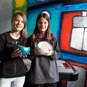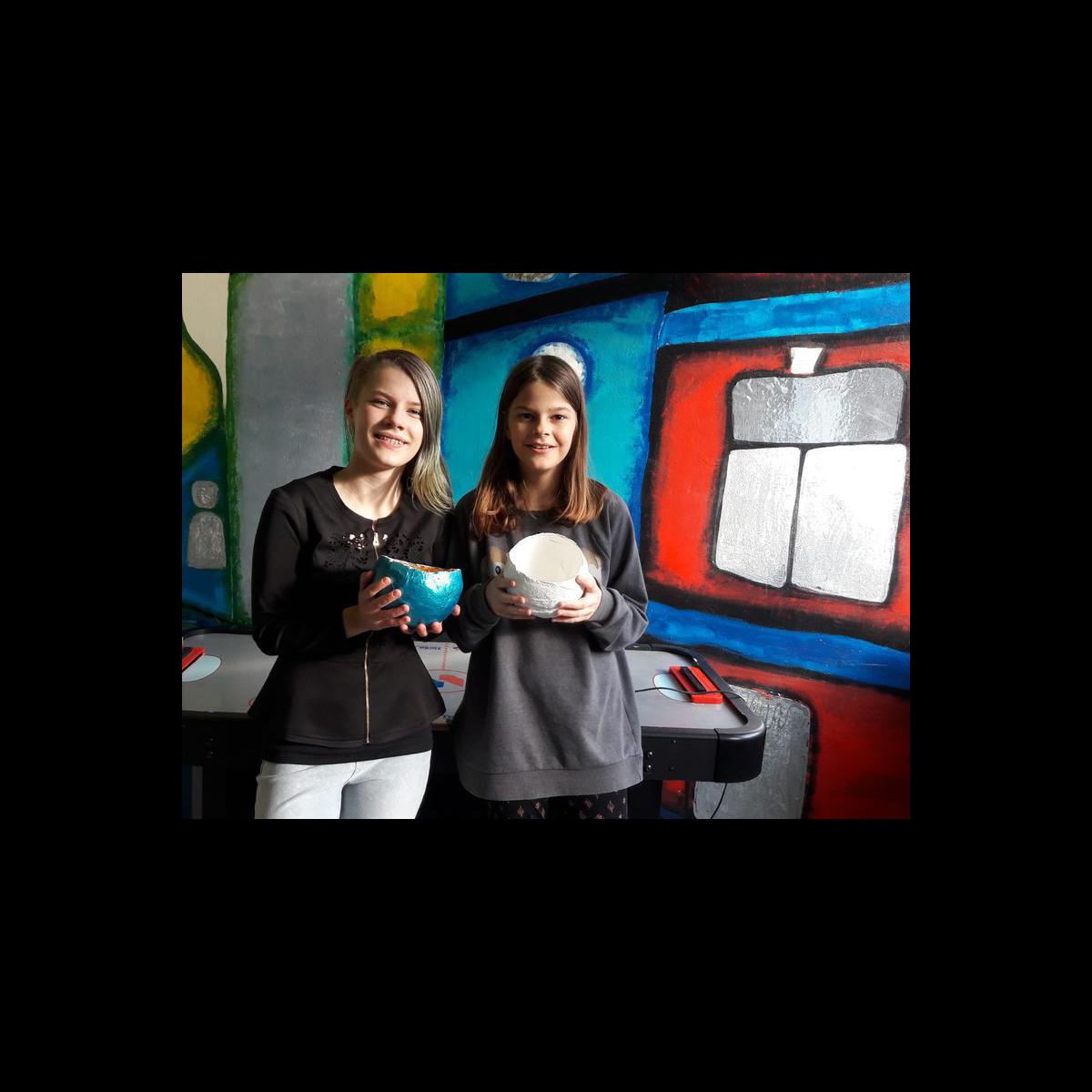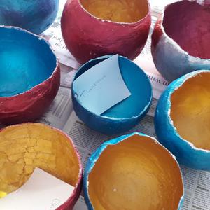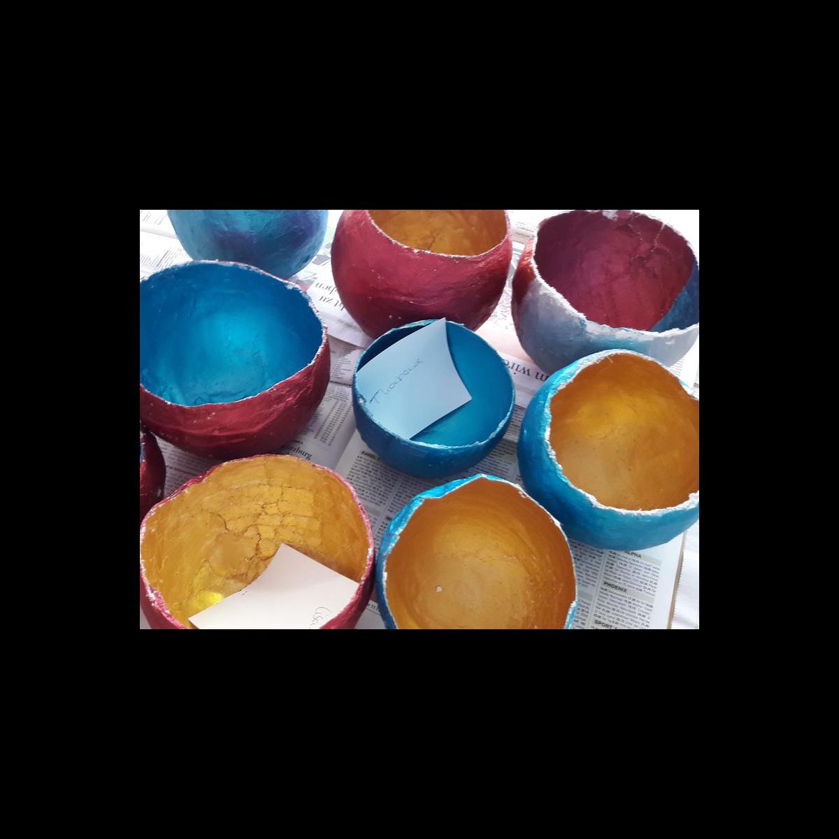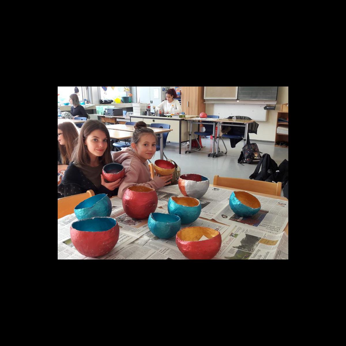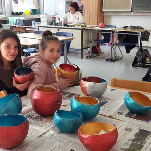 In vorweihnachtlicher Stimmung gestalten die Schüler eine Schale mit Messingfarbe.