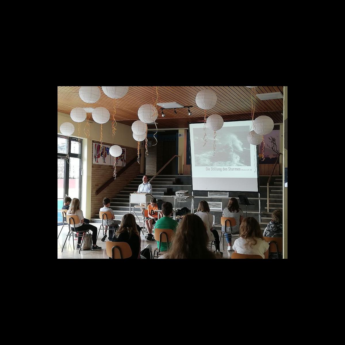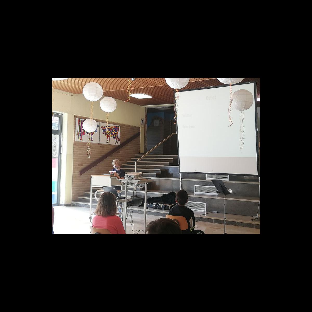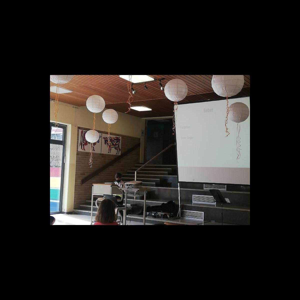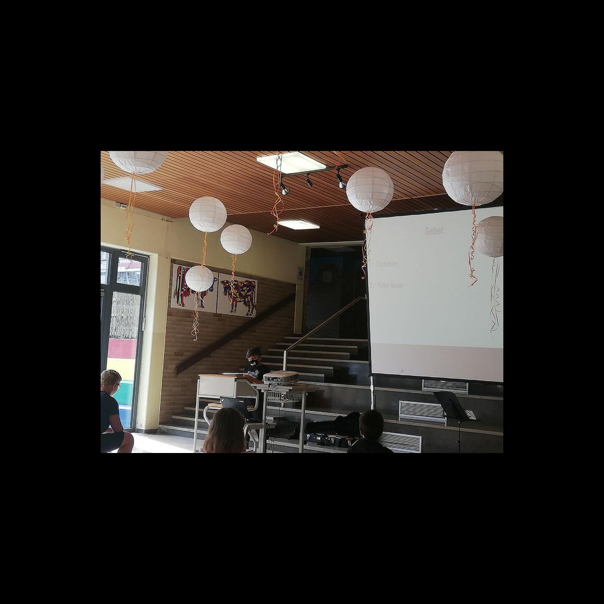 In der Mittelschule fand die Abschlussandacht in der noch festlich geschmückten Aula zuerst für die Gruppen 1, anschließend für die Gruppen 2 statt.
