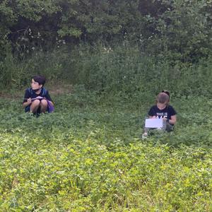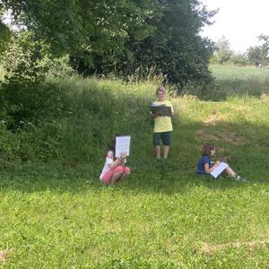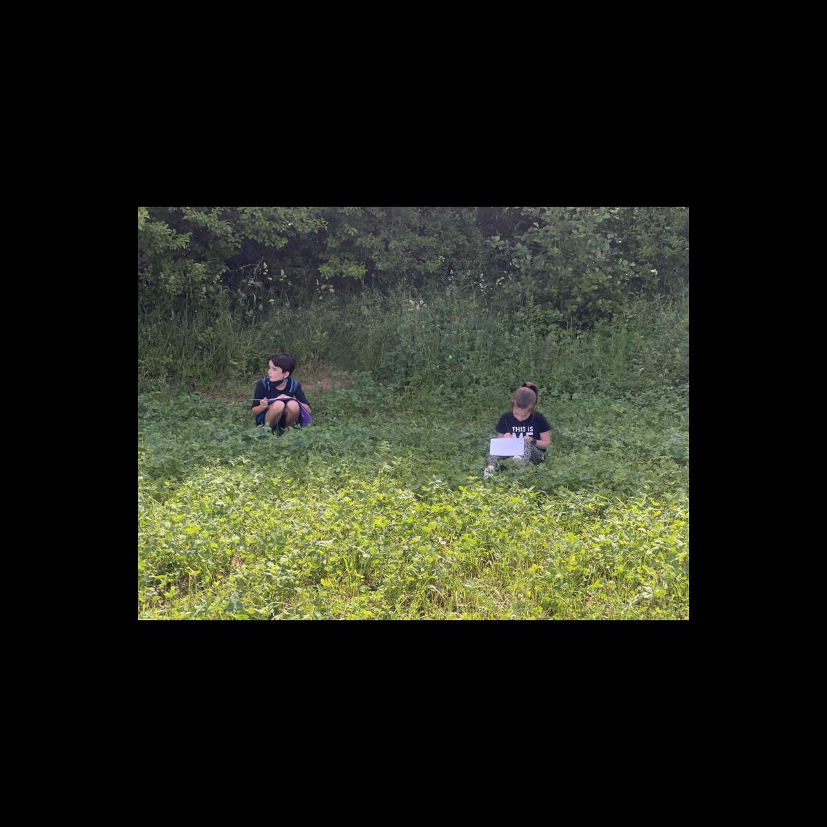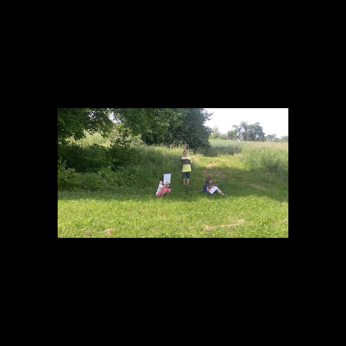 Die Viertklässler verteilten sich mit Heft und Stift und mit großem Abstand auf einer Wiese und ließen ihre Sinne sprechen.