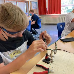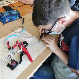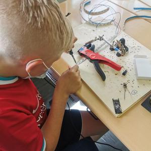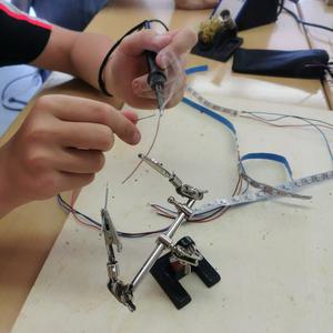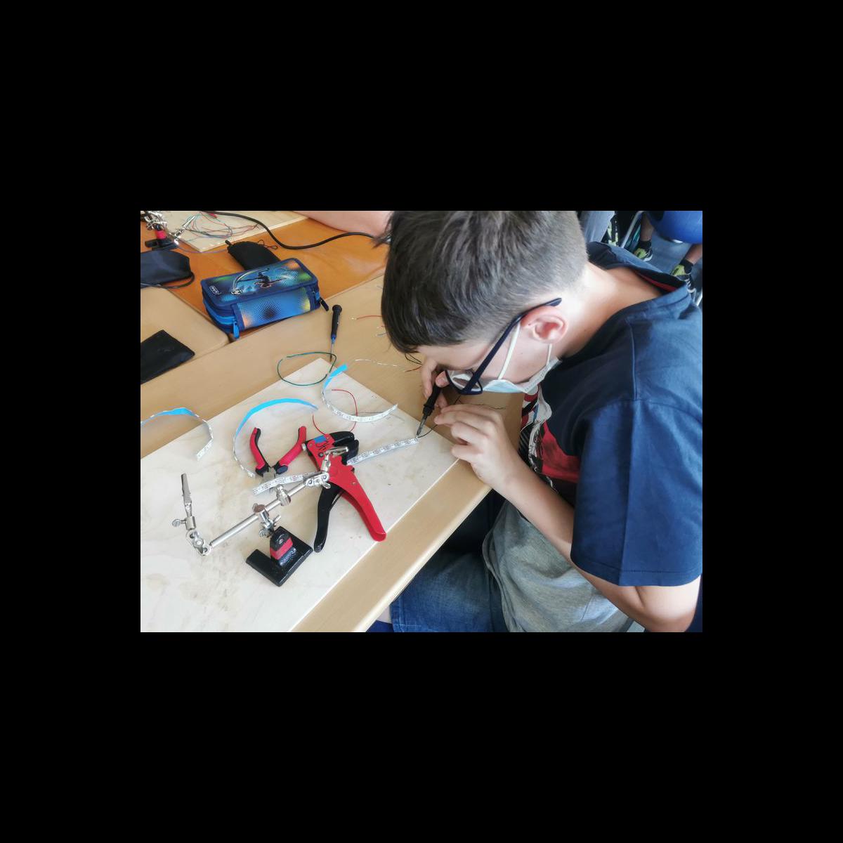 Am Ende der Woche freute sich jede/r in der Klasse über eine selbstgebaute LED-Lichterbox. Außerdem gewann die Klasse Erfahrung mit Lötkolben, Stromkreis bauen und bohren und schrauben.