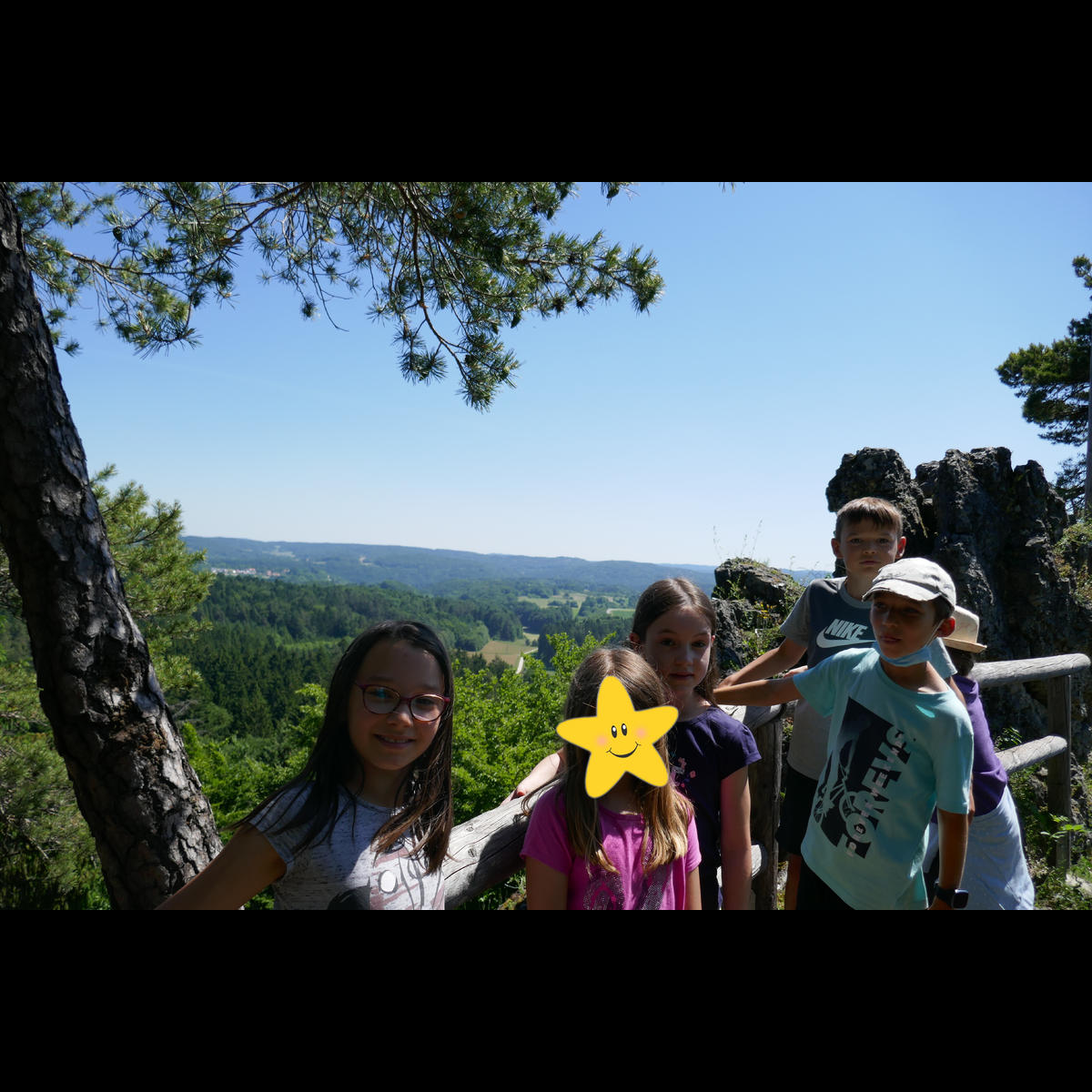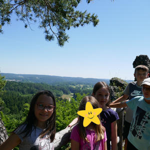Am Ende stellten wir in einem kurzen Quiz unser gelerntes Wissen unter Beweis. Die Zeit der Auswertung nutzten wir für eine kurze Wanderung zu einem Aussichtspunkt am Schlossberg. Der Steig über die ehemalige keltische Burg hat uns mit einer atemberaubenden Aussicht belohnt. Ein wirklich herrlicher Blick von dort oben! Nach der Rückkehr gab es sofort die Siegerehrung. Die beiden Quizkönige Jakob und Felix G. schnitten am besten abund bekamen ein Gehörn als Geschenk. Hoffentlich kann die Siegerehrung im Landratsamt Forchheim stattfinden.