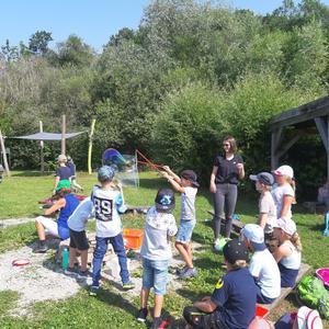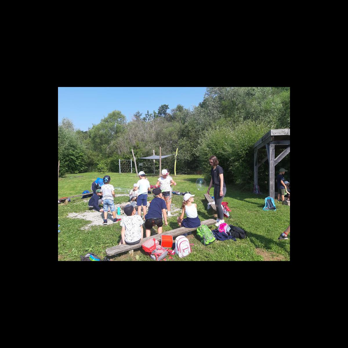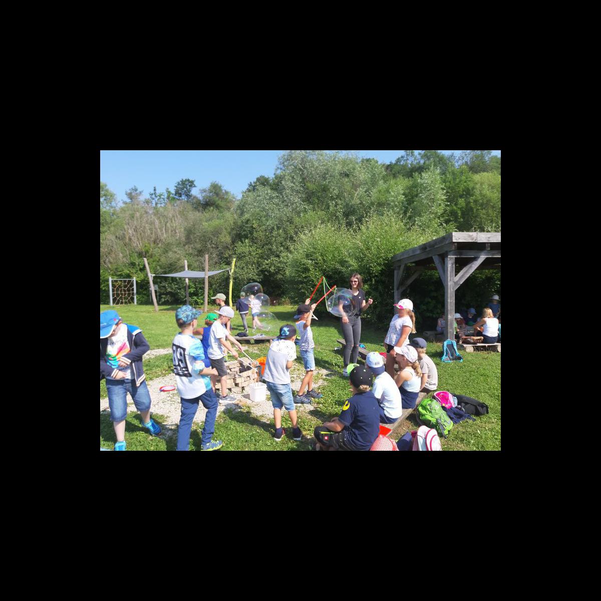 Mit Hilfe eines Experiments fanden wir heraus, wie Luft zu Wind wird. DieSeifenblasen im Klein-, wie auch im Großformat machten den Weg der Luft sichtbar. Zusätzlich wurden Windräder gebastelt und bemalt. Anschließend konnten sich alle Schüler nochmal im Labyrinth auf dem Barfußpfad und der Wiese austoben. Es war ein richtig schöner Ausflug.