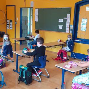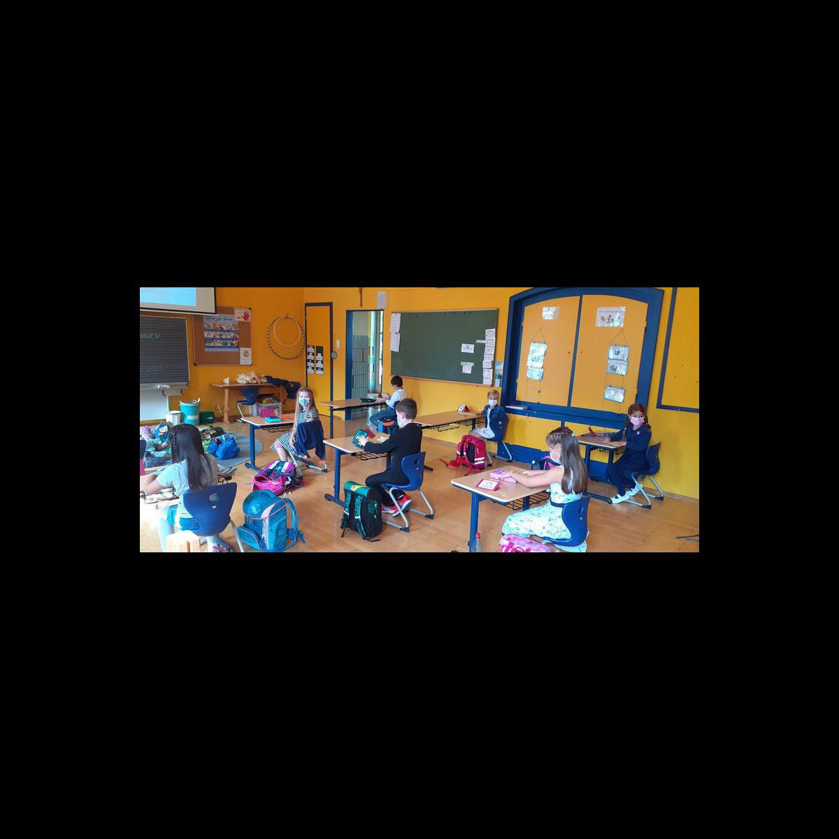 Nach einem Gottesdienst in der Pfarrkirche wurden die Erstklässer am Pausenhof der Schule von den Grundschülern mit einem Lied begrüßt. Danach ging es gemeinsam mit den Paten der 2. Klasse zur ersten Unterrichtsstunde ins Klassenzimmer.