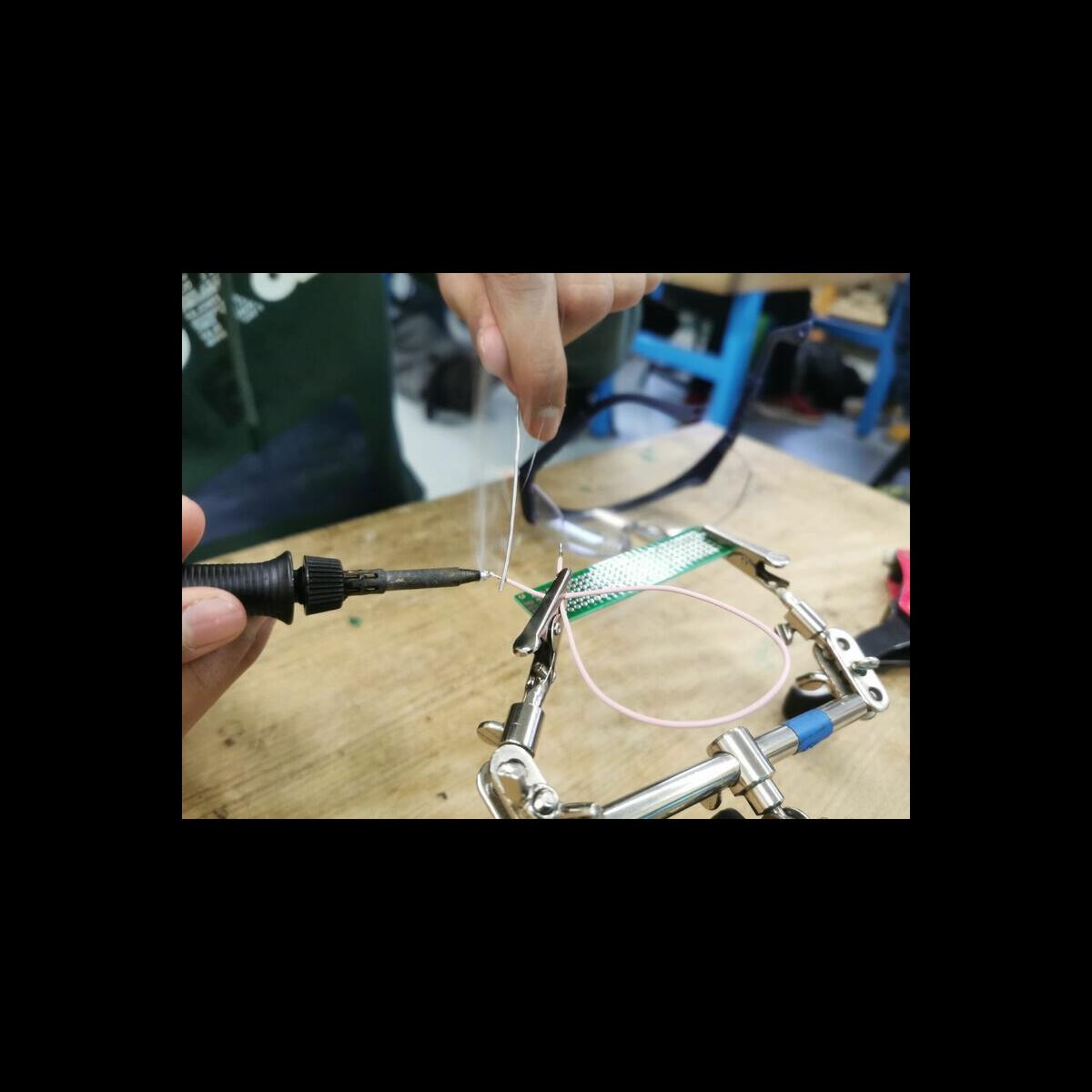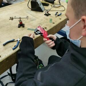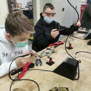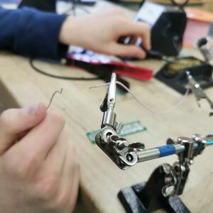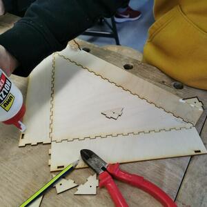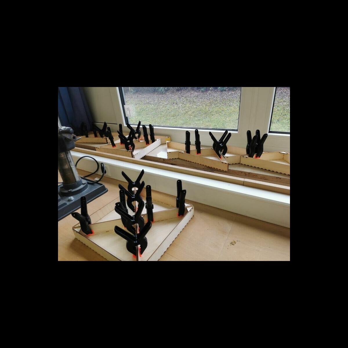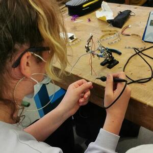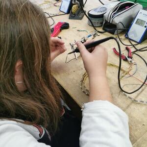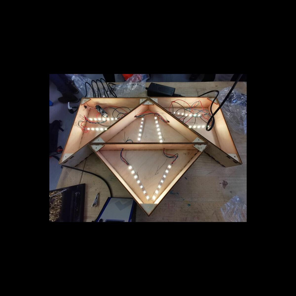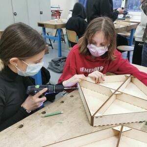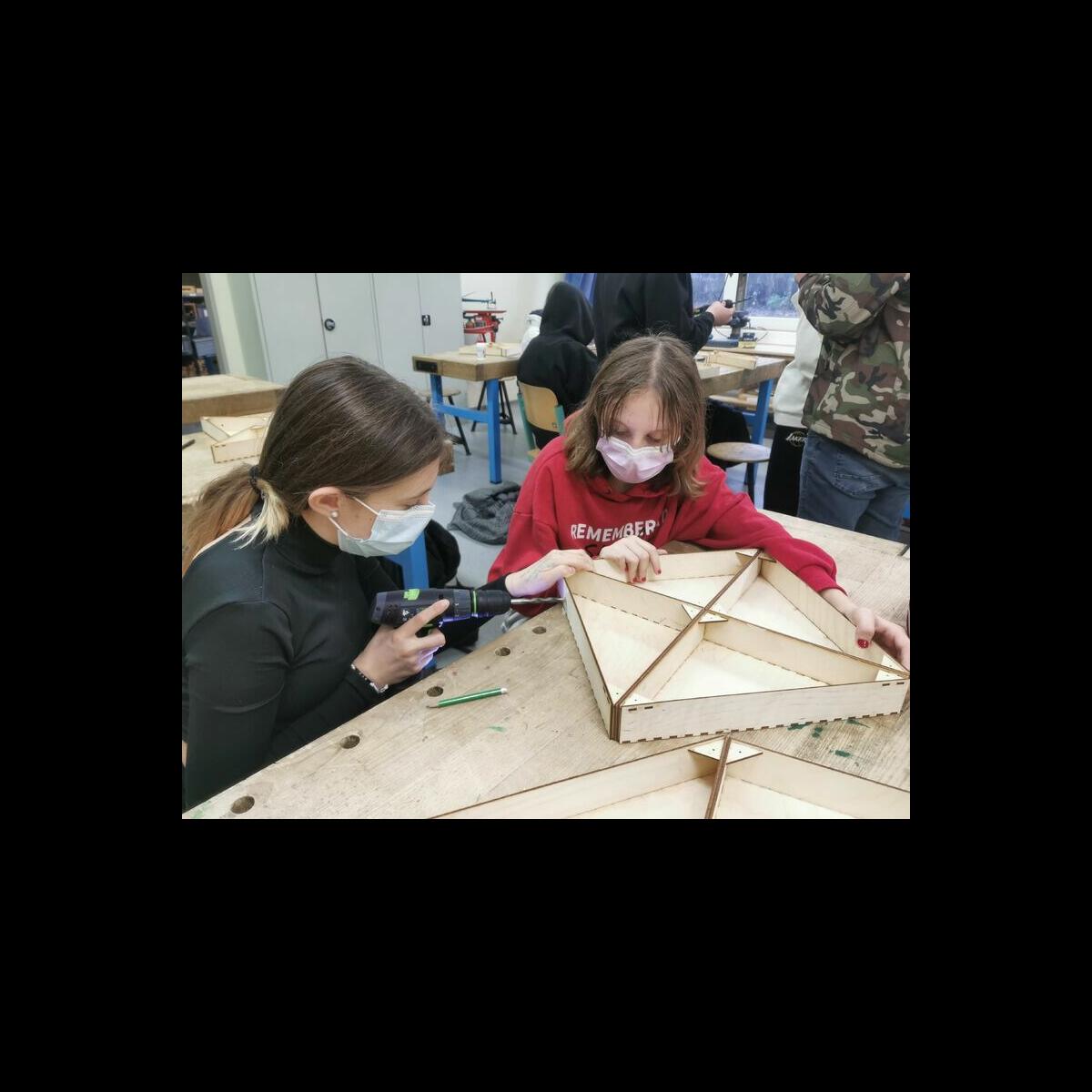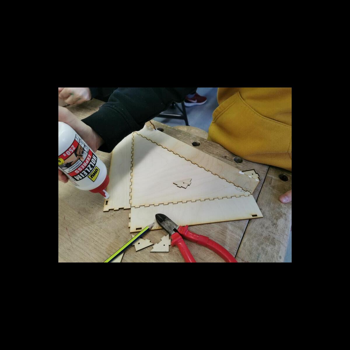 Statt sich ständig mit Mathe, Deutsch und anderen Fächern zu quälen, war praktischer Unterricht angesagt. Unter dem Motto „Praxis an Mittelschulen“ wurden mit der Werkpädagogin Gisa Stich digitale Lichtpanels von den Schülern gebaut. Dabei handelt es sich um kreativ kombinierbare Lichtdreiecke. Hinter einer Plexiglasscheibe stecken LED-Stripes, die digital über eine Handy-App von den Schülern programmiert und gesteuert werden können. Neben handwerklichem Geschick und technischem Verständnis konnten die Schüler in dieser Woche auch ihre Kreativität bei der Verkabelung und der Gestaltung mit einbringen. Das Ergebnis war hervorragend! Cool war, dass nicht nur jeder sein Lichtpanel mit heimnehmen konnte, sondern dass die Klasse sogar einen zusätzlichen Lichtbaustein für ihr Klassenzimmer bauen durfte. So wird der triste Schulalltag mit Sicherheit ein bisschen bunter und dem einen oder anderem ist vielleicht auch ein Licht aufgegangen, welchen Weg er beruflich mal einschlagen will.