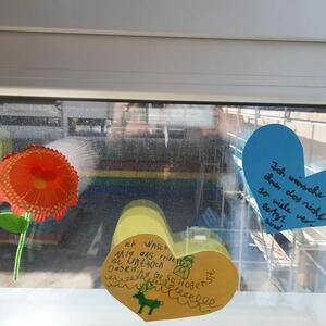 Wir schicken Ihnen gute Wünsche und positive Gedanken, die die Kinder aufgeschrieben haben.