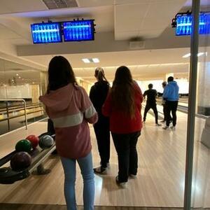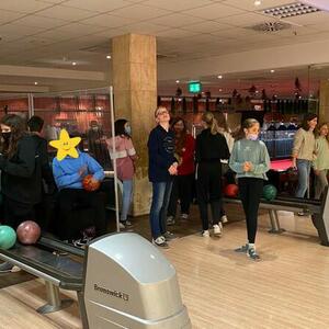 Die Freude war groß, da man ja coronabedingt bisher keine Ausflüge mehr machen durfte. Außerdem hat die Klasse in den letzten Wochen gut gearbeitet und viele Proben geschrieben, so dass sie eine Belohnung verdient haben. Leider konnten wir die Nürnberger Lorenzkirche nur von außen betrachten, da sie noch nicht geöffnet hatte. Stattdessen haben wir uns im McDonald ́s aufgewärmt, um dem Regen zu entfliehen. Die Schüler freuten sich über ein „Pommes-Frühstück“. Gestärkt liefen wir zum „Blue-Bowl“ in der Zeltnerstraße. Dort angekommen durften wir gleich Getränke bestellen und uns das passende Schuhwerk aussuchen. Die ersten 3 Bahnen gehörten uns. Und dann konnte es losgehen! Alle hatten großen Spaß, egal ob Profi oder Laie. Wir waren uns einig, dass wir so etwas wieder machen werden.
