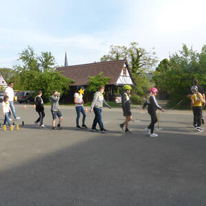 Am Montag, den 16.05.2022, fand im Pausenhof der Grund- und Mittelschule Kirchehrenbach ein Fahrradparkour für die 4., 5. und 6. Klasse statt. Zwei Moderatoren des ADAC Nord leiteten die Veranstaltung.