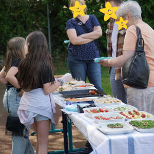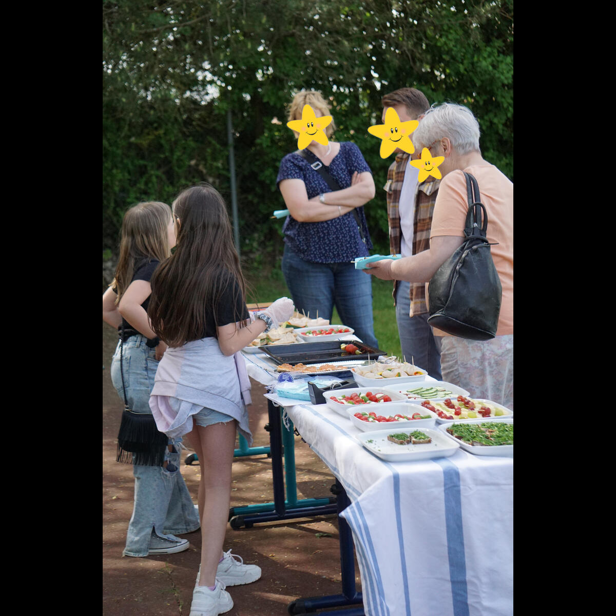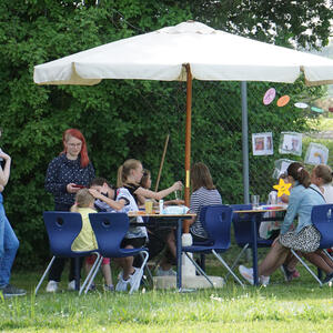 Auch eine beachtliche Anzahl an Eltern und Familienmitgliedern nutzten das schöne Wetter für einen Besuch, um bei Kaffee und Kuchen oder Gegrilltem den Tag in der Sonne zu genießen.
