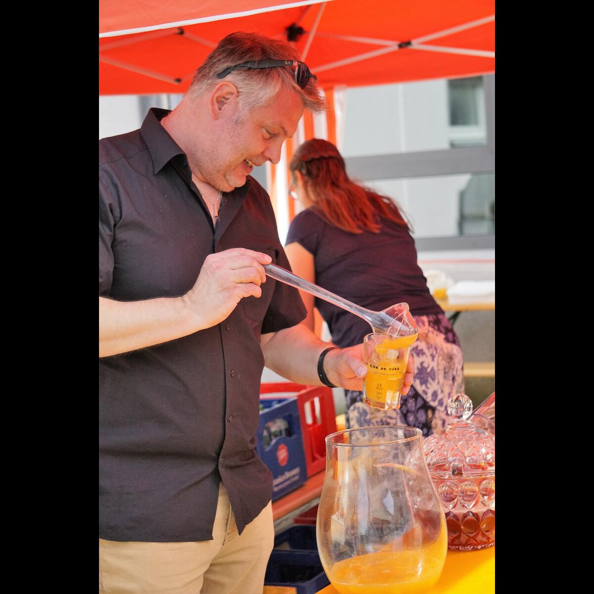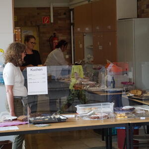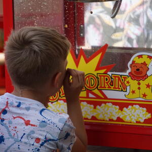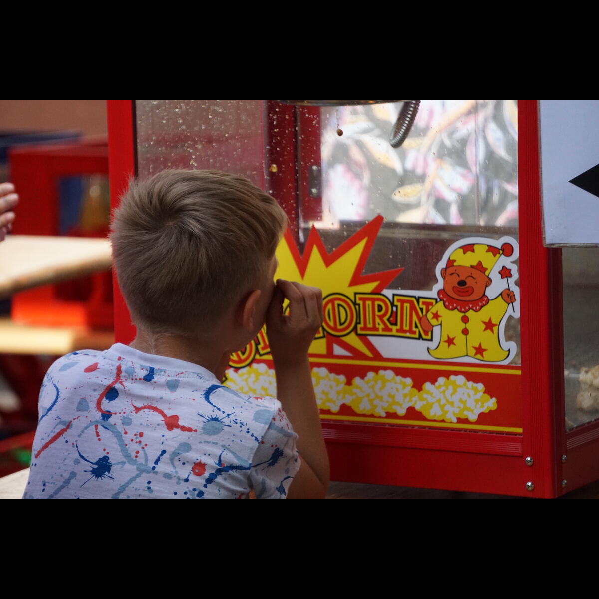 Parallel zu „Spiel & Spaß“ konnte man sich auf dem Grundschulpausenhof zum gemütlichen Beisammensein treffen. Um Kuchen, Gegrilltes und Getränke kümmerte sich der Elternbeirat. Es gab auch frisches Popcorn.