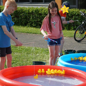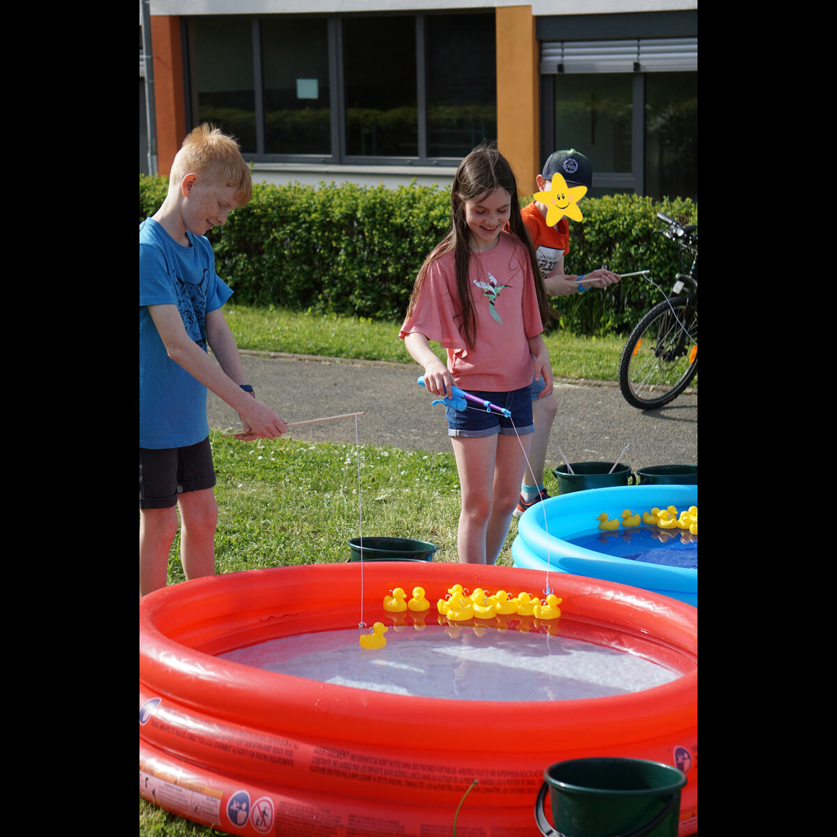 Am Freitag um 15:30 Uhr ging es los: Die Klassen boten verschiedene Stationen mit Aktionen für Groß und Klein an. Egal ob Sackhüpfen, Entenangeln, Dosenwerfen, Kistentransport und noch viele weitere Angebote - die Kinder hatten Spaß. Der Höhepunkt war die Tombola mit einer bunten Mischung an Preisen.