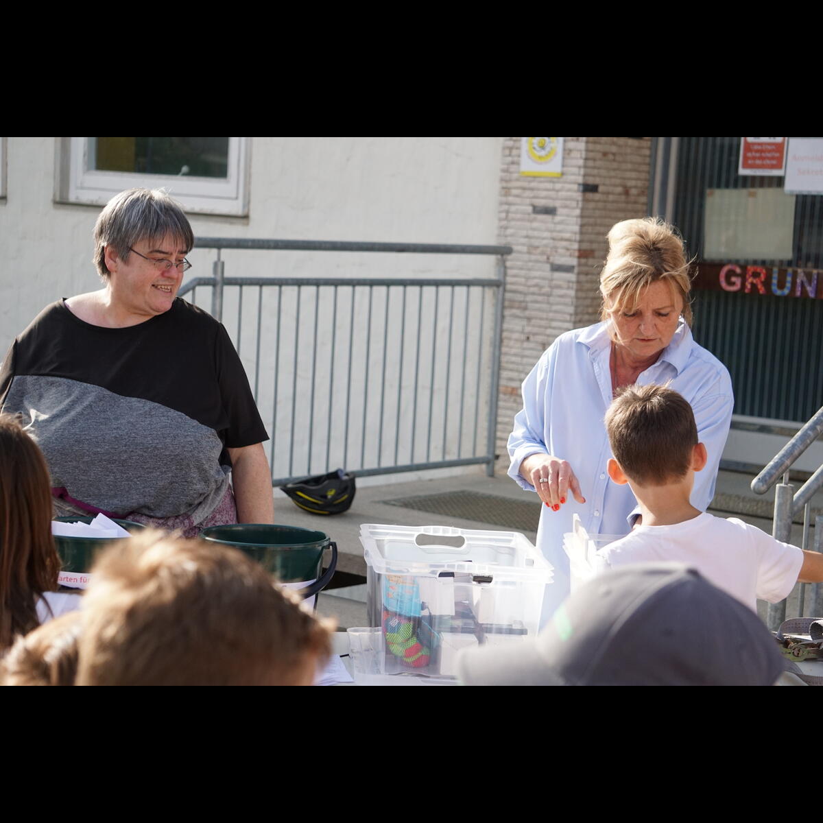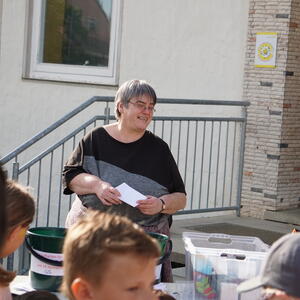 Um 18 Uhr fand die Verlosung statt. Aus dem „Mittelschuleimer“ und aus dem „Grundschuleimer“ wurden jeweils 9 Stempelkarten gezogen. Die Gewinner durften sich über kleine Preise freuen.