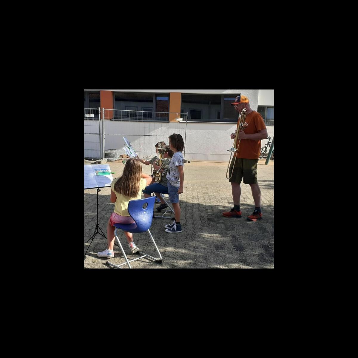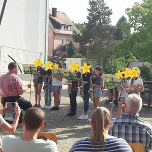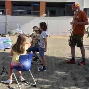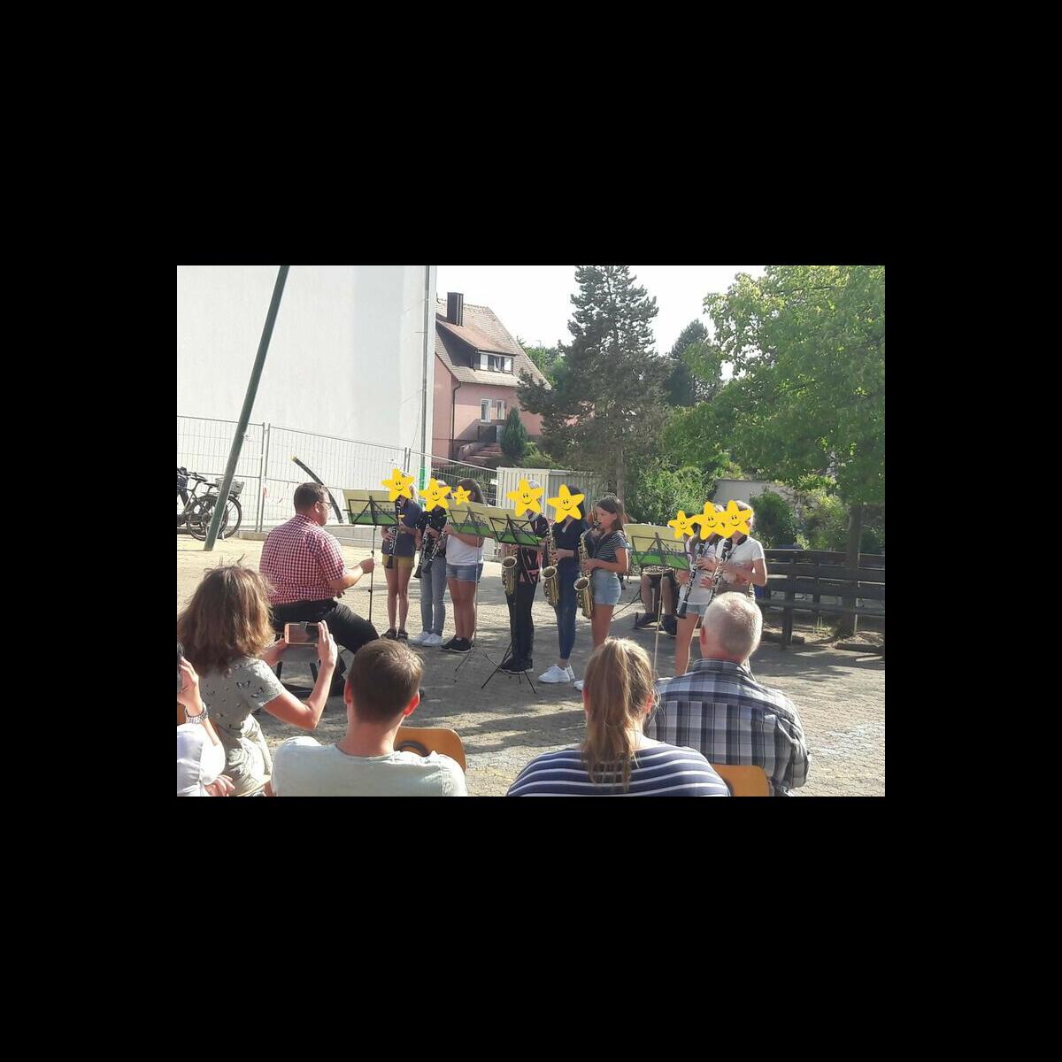 Bei strahlendem Sonnenschein konnten die Jekischüler der 3. und 4. Klassen im Grundschulpausenhof ihr Können zum Besten geben. Zahlreiche Zuhörer lauschten den Stücken der eifrigen Orff-, Gitarren- , Blech- und Holzbläsergruppen und spendeten viel Applaus.