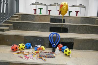 Vielen Dank, lieber Förderverein! Ihr habt immer großes Verständnis, dass Sachen mal kaputt oder verloren gehen. Neben den heiß ersehnten Softbällen waren auch ein Riesenfederballspiel, ein Balancierbrett, Schwungbänder, kleine Bälle, Erstzkugeln für das Therapieboard und ein Glockenspiel dabei. Die Sachen sind schon viel und gerne im Pauseneinsatz. DANKE!