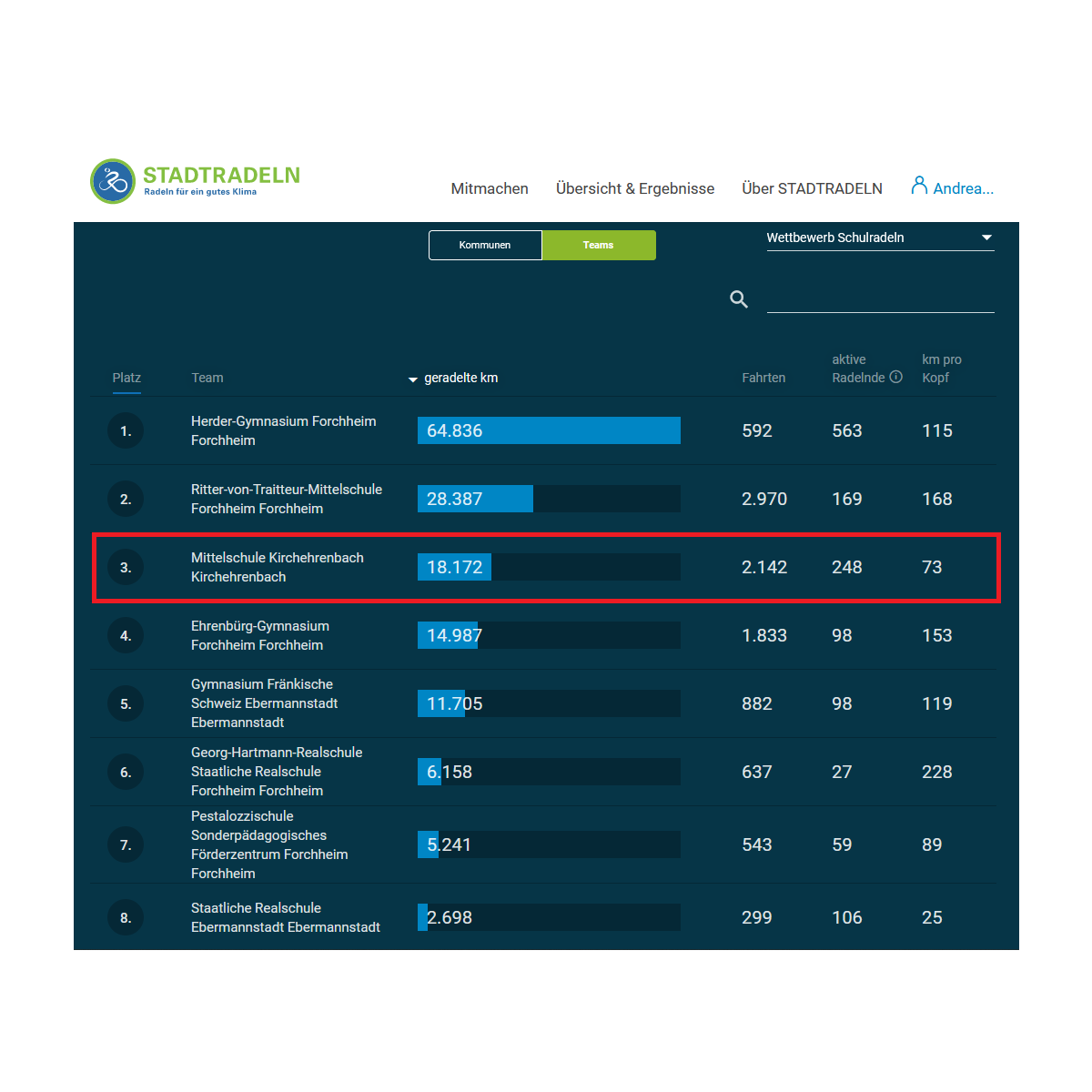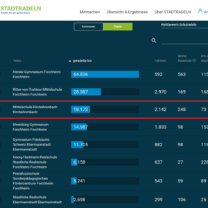 Die Grund- und Mittelschule Kirchehrenbach belegte auch in diesem Jahr beim Schulradeln wieder den dritten Platz von allen Schulen aus dem Landkreis und der Stadt Forchheim! Wie bereits im letzten Jahr, ist uns heuer auch wieder diese tolle Leistung gelungen, herzlichen Glückwunsch!