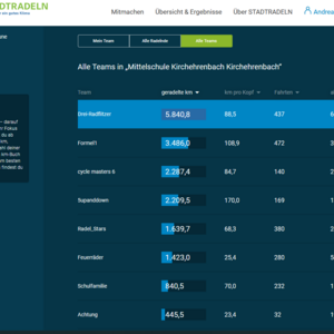 Das beste Team der Schule konnte einen großen Vorsprung herausfahren. Mit ihren 5.840 Kilometern werden die „Drei-Radflitzer“ im Rahmen einer kleinen Feierstunde am letzten Schultag nicht nur die Goldmedaille erhalten, sondern auch ein kleines Geschenk. Das „Formel 1“-Team mit 3.486 Kilometern und die „Cycle Masters 6“ mit 2.287 Kilometern dürfen sich über die Silbermedaille bzw. über die Bronzemedaille und auch jeweils über ein kleines Geschenk freuen.