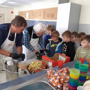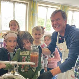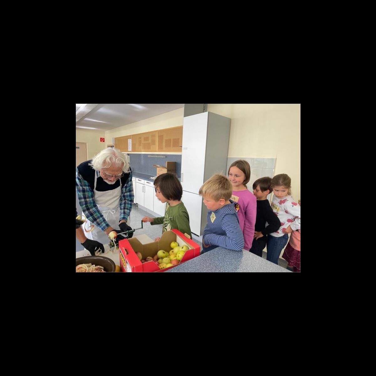 Zum Schluss durfte jeder noch fleißig beim Schälen helfen, bevor wir den frisch gepressten Apfelsaft verköstigt haben! Vielen Dank an Herrn Oehme und Herrn Schauder vom Bund Naturschutz.