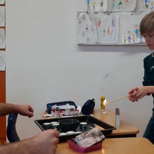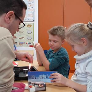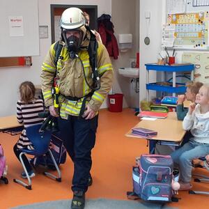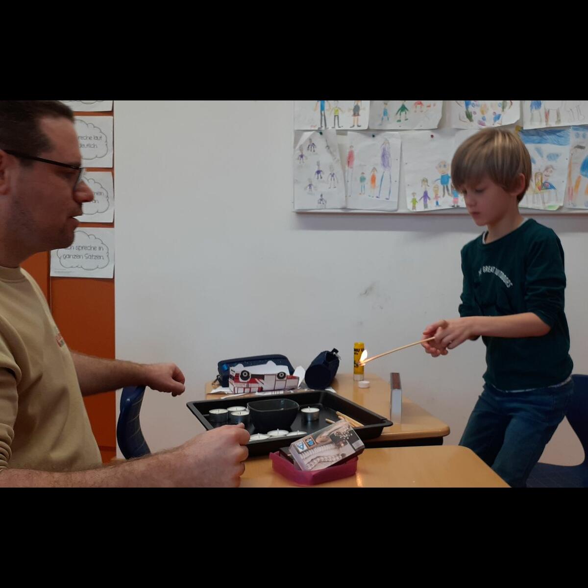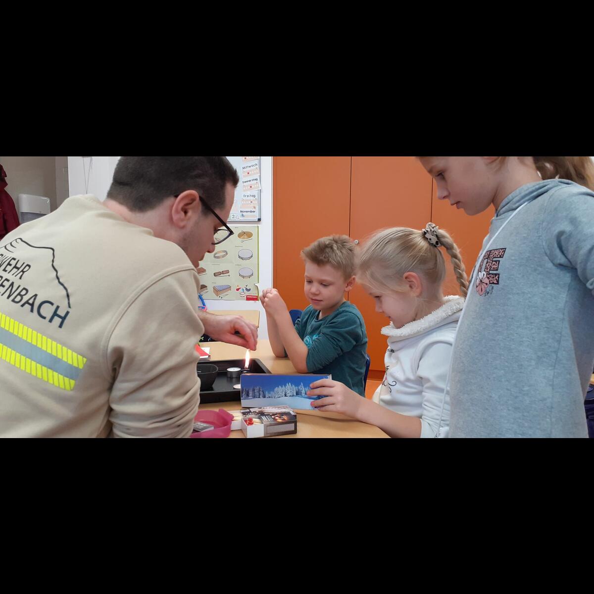 Bevor jedes Kind üben konnte, wie eine Kerze sicher angezündet wird, wurden wir über die Vor- und Nachteile des Feuers aufgeklärt. Wir erfuhren auch wie ein Notruf richtig abgesetzt wird, wie sich ein Rauchmelder anhört und wie es aussieht und sich anhört, wenn die Feuerwehr im Schutzanzug zum Retten ins Haus kommt. Vielen Dank an Frau und Herrn Müller für diese spannende Stunde.