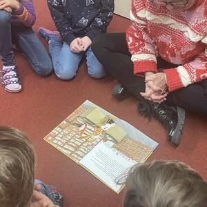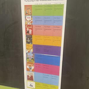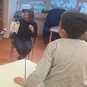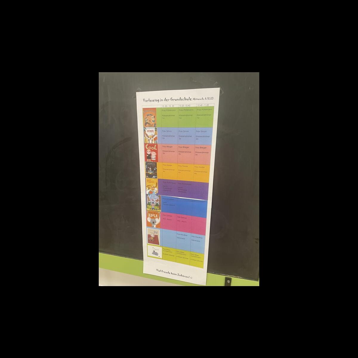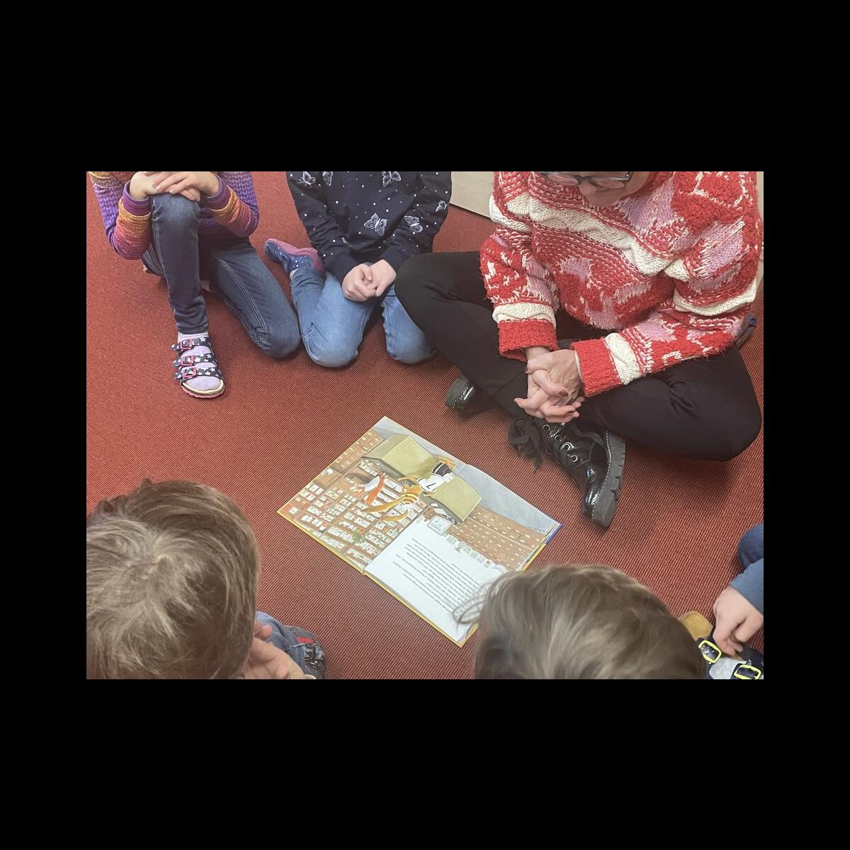Lehrer/innen, unsere JaS Frau Ritter-Gunzelmann und Sekretärin Anja Klaußner, die Hausmeisterin Sybille Schubert - alle haben mitgemacht an der Vorlesestunde für unsere Grundschüler, die begeistert zugehört haben.