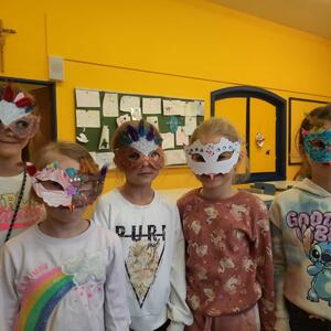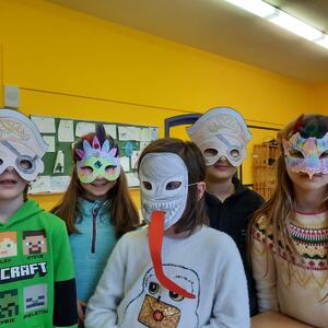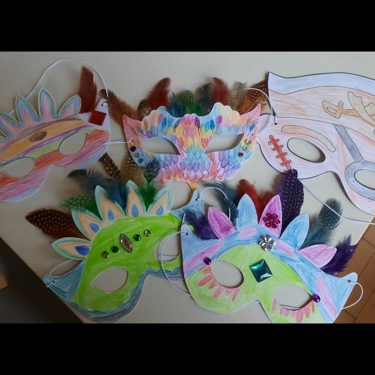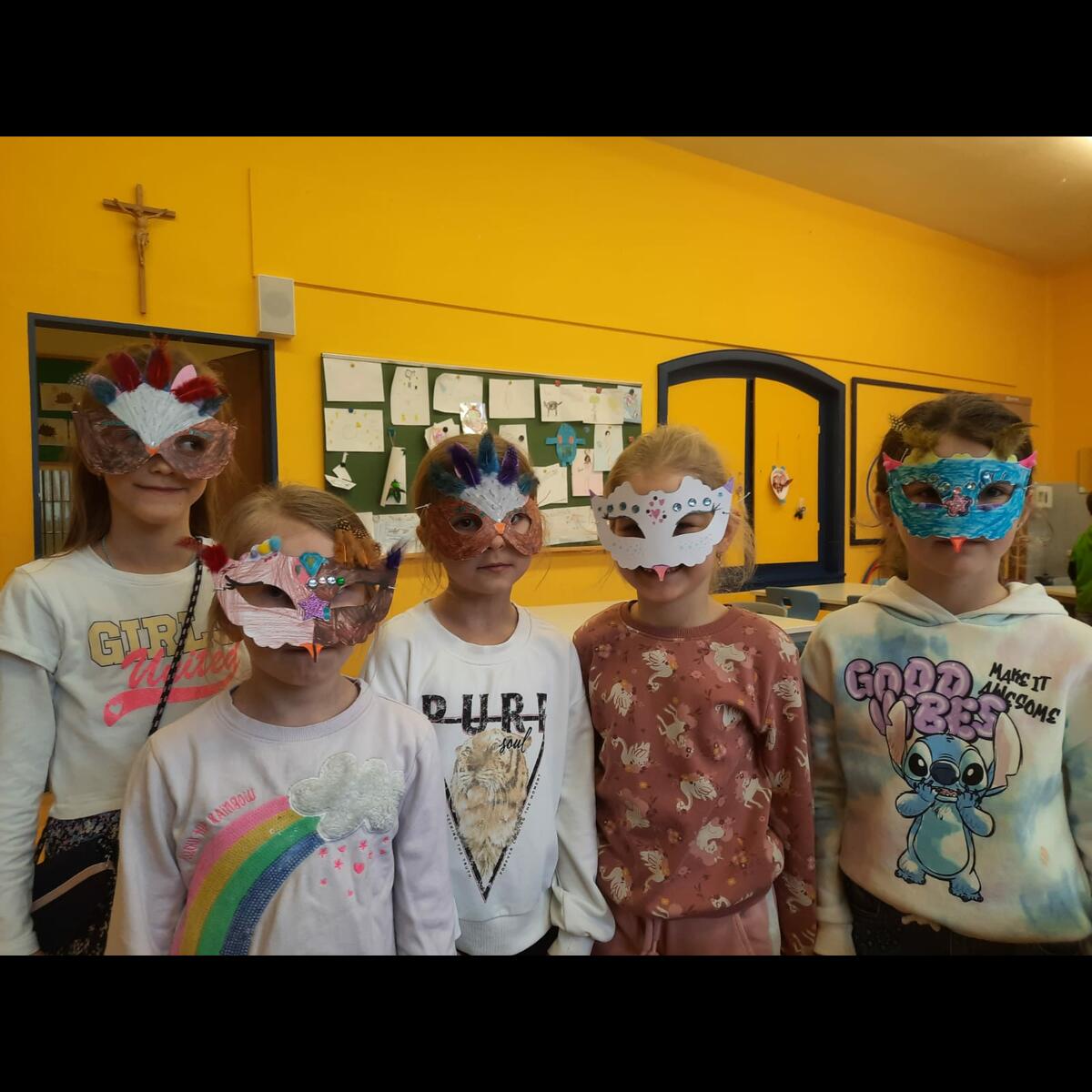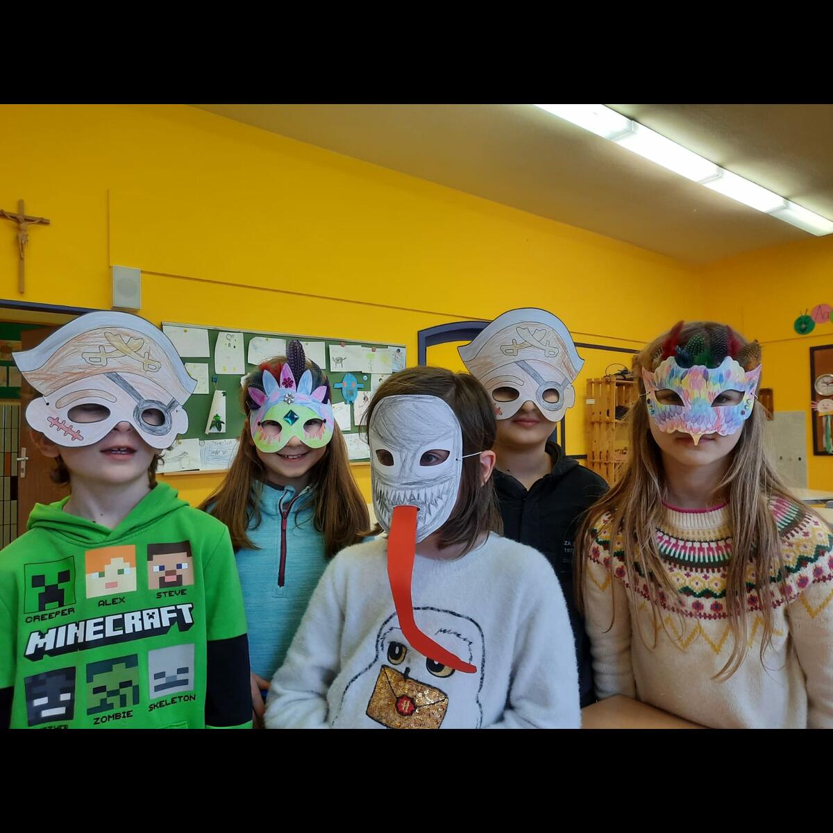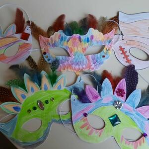 ... die OGTS Kinder basteln fantasievolle Faschingsmasken.