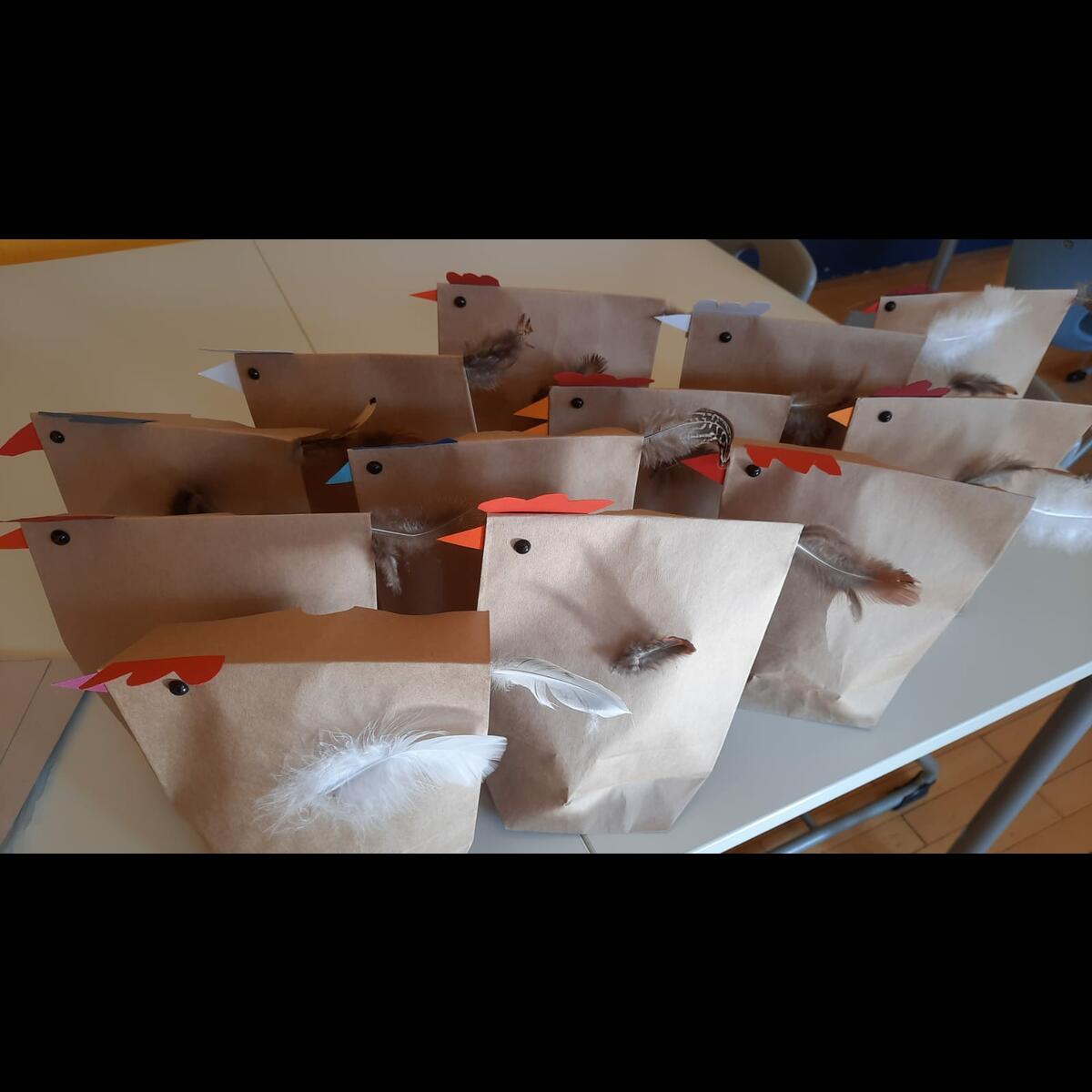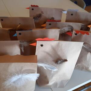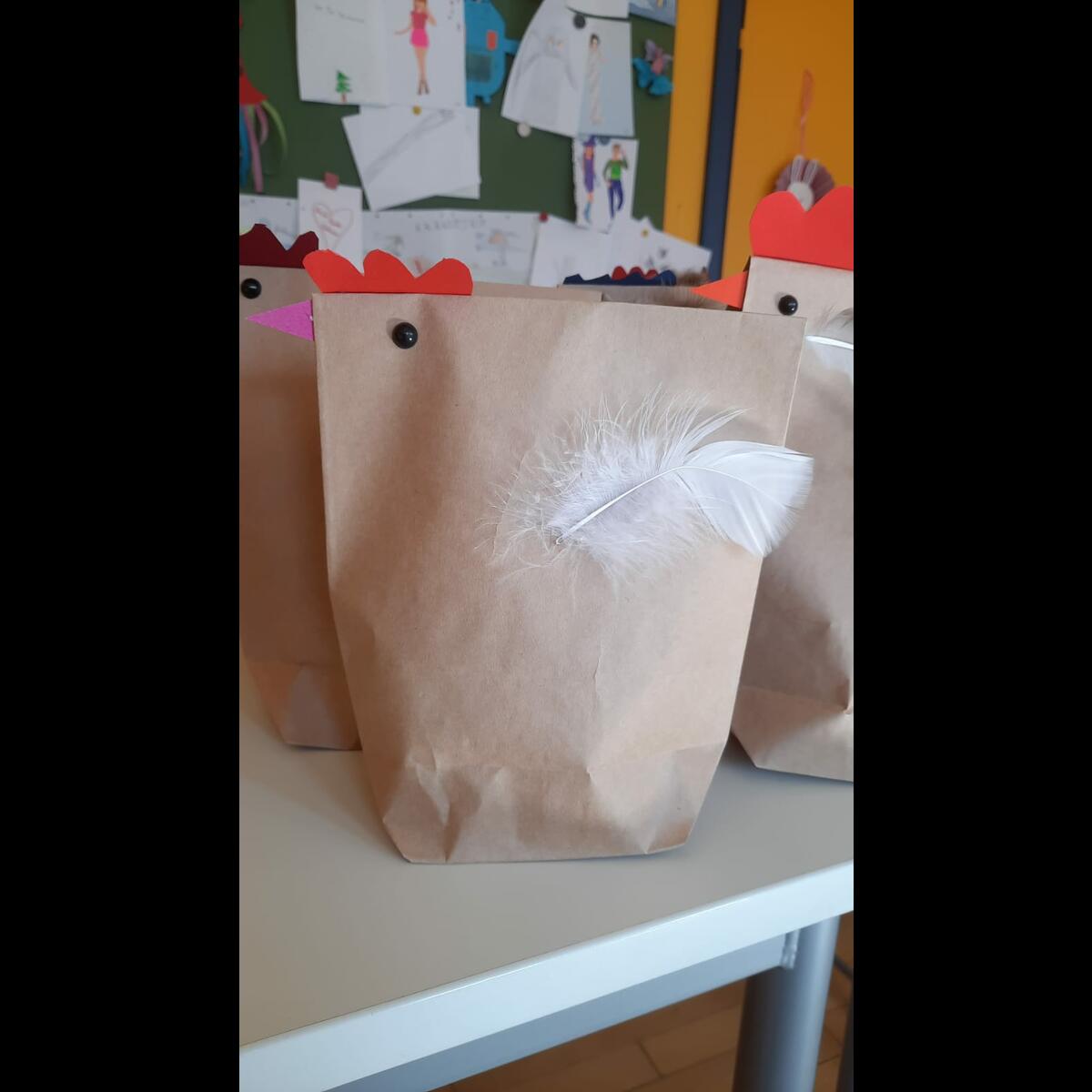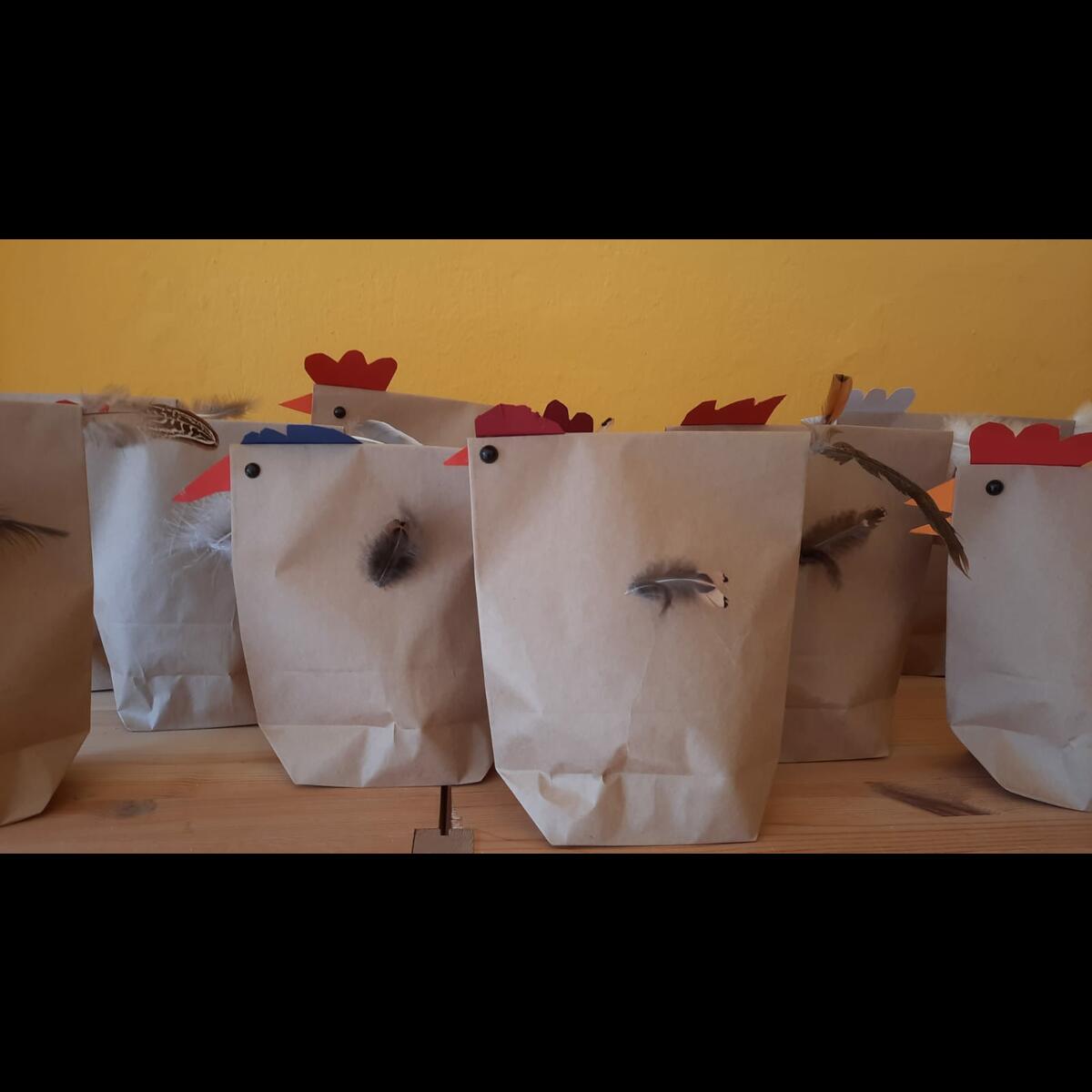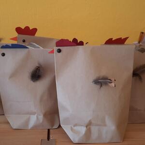 Die Kinder gestalteten eine Tüte in Form von einem Huhn. Als Überraschung wurde die Tüte vun den OGTS-Betreuern mit Süßigkeiten befüllt.