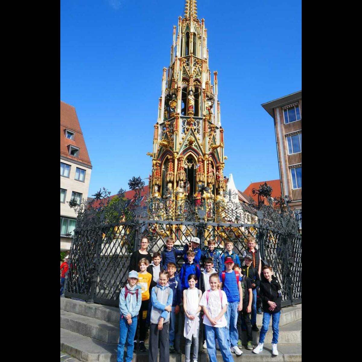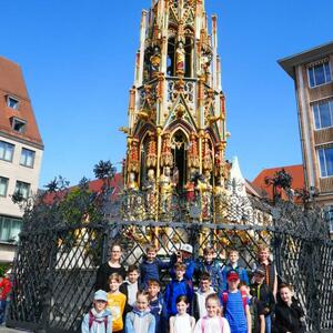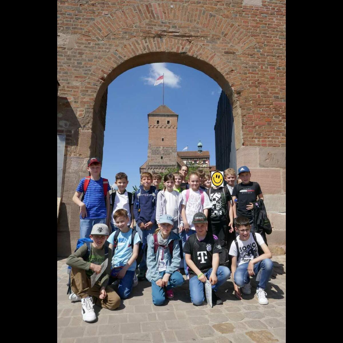 Mit dem Zug fuhr die Klasse zusammen mit Frau Nader und Frau Langhammer zum Nürnberger Hauptbahnhof und dann ging es zu Fuß durch die Nürnberger Altstadt. Vorbei an der Lorenzkirche, dem Schönen Brunnen und weiteren Sehenswürdigkeiten. Die Gruppe erreichte die Burg pünktlich um 10 Uhr, wo sie schon erwartet wurden.