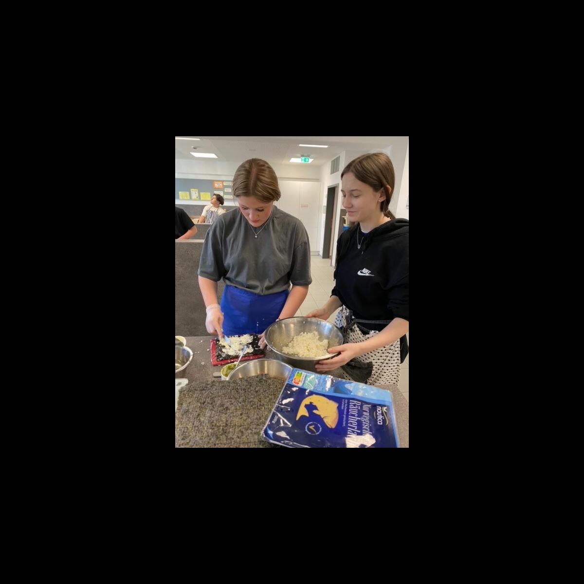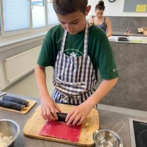 Sehr professionell und voller Tatendrang wurde gekocht, geschnippelt und gerollt. Das Ergebnis kann sich definitiv sehen lassen. Alle haben probiert und fast allen hat es geschmeckt.