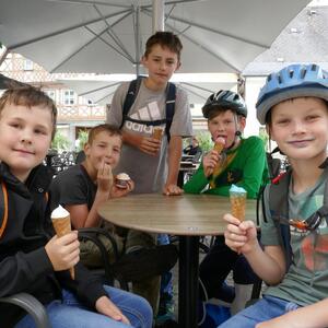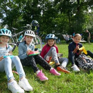 Zum Abschluss des Aktionszeitraumes wollte das Team „Four on fire“ nochmal seinen Vorsprung beim schulinternen Ranking etwas ausbauen. Ein paar weitere Teams sitzen uns nämlich dicht auf den Fersen. Am 05. Juli machte die 4a deshalb einen Fahrrad-Ausflug. Wir radelten von Kirchehrenbach bis zum Spielplatz nach Gasseldorf. So konnten wir 410 Kilometer für unser Team gutschreiben. Ob uns das den 1. Platz an der Schule sichert? Eine Goldmedaille und ein Preis würde für jeden Radelnden des Siegerteams winken…
