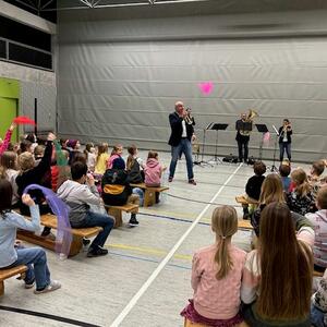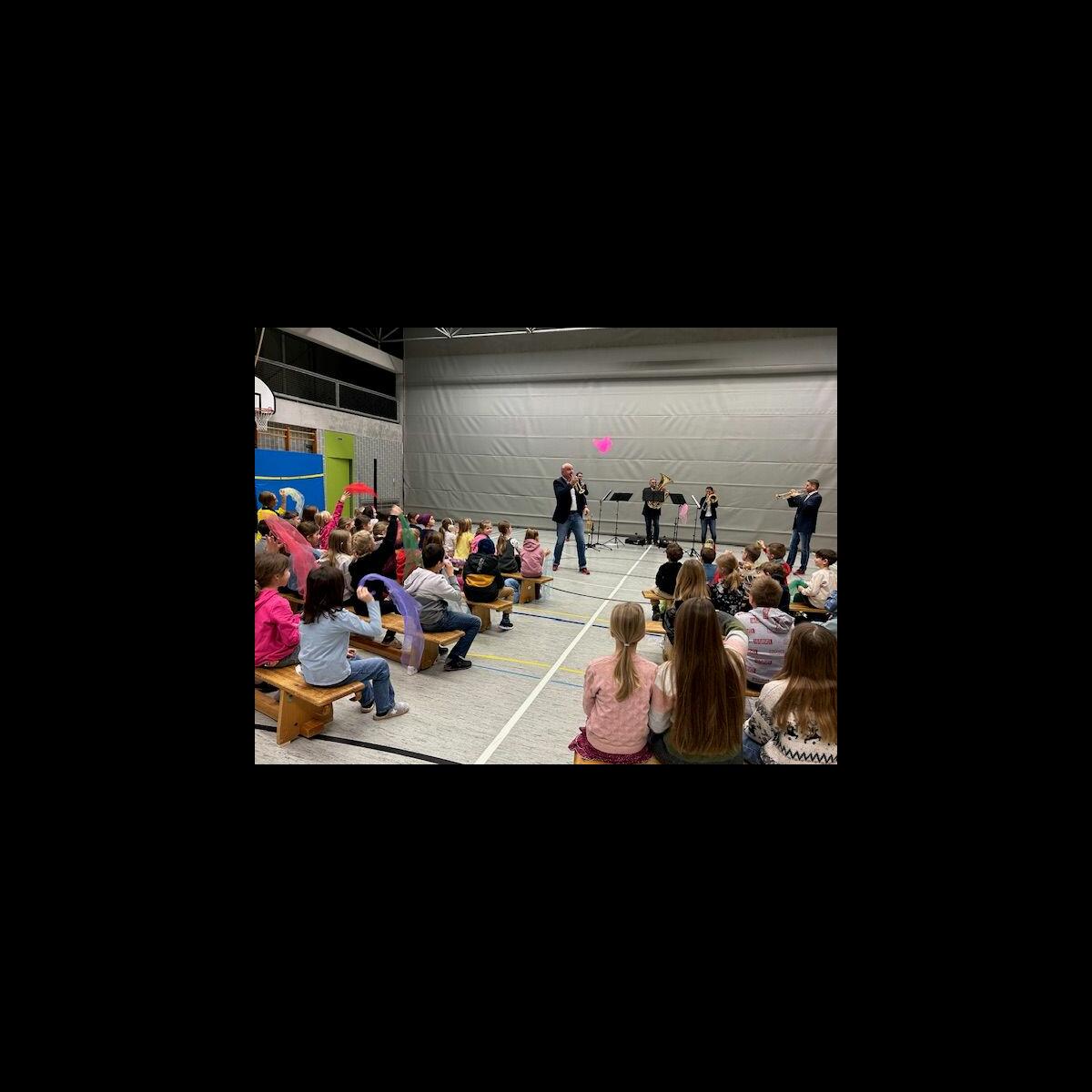 Sowohl die Schüler und Schülerinnen als auch die Lehrerinnen verabschiedeten die fünf Musiker mit donnerndem Applaus. Besser kann Werbung für das Erlernen eines Instruments kaum funktionieren. So meldeten einige Zweitklässer danach auch an, dass sie im kommenden Schuljahr im Rahmen des JeKi-Unterrichts ein Blechblasinstrument erlernen möchten.