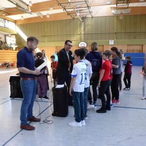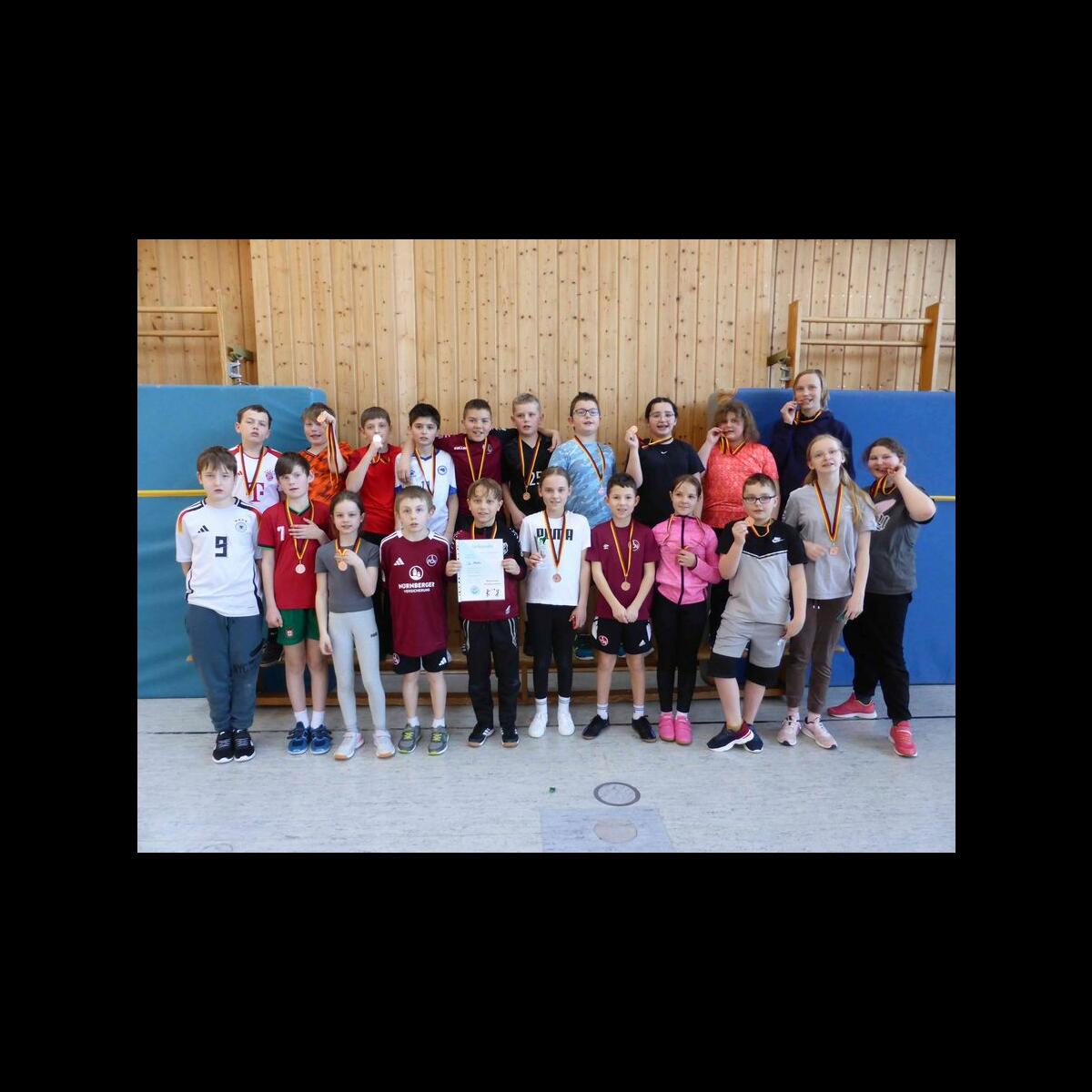 Teilgenommen hatten sieben Grundschulklassen (3. und 4. Klassen), die in Halle 1 und 2 gegeneinander spielten und vier Mittelschulklassen (5. und 6. Klassen), die in Halle 3 um den Sieg kämpften. Alle spielten sehr gut.
