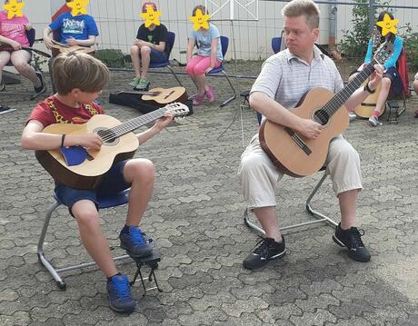Bei strahlendem Sonnenschein konnten die Jekischüler der 3. und 4. Klassen im Grundschulpausenhof ihr Können zum Besten geben. Zahlreiche Zuhörer lauschten den Stücken der eifrigen Orff-, Gitarren- , Blech- und Holzbläsergruppen und spendeten viel Applaus.